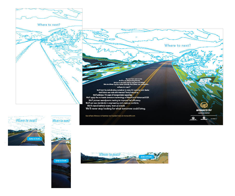 Steering Monaco RV from a position of bankruptcy and resultant issues with dealers and existing customers required a forward looking brand rethink. Integrated new brand campaign – print, trade, digital
